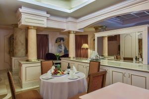 Всички просторни стаи на Delphin Diva Premiere разполагат със самостоятелни балкони, а във всяка стая има кът с мека мебел със сателитна телевизия. Всички стаи са със собствена баня и сешоар.