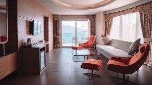 Всички стаи в Casa De Maris Spa & Resort Hotel Adult Only 16 Plus са с модерен интериор в пастелни цветове. Всички те разполагат с минибар и самостоятелна баня.