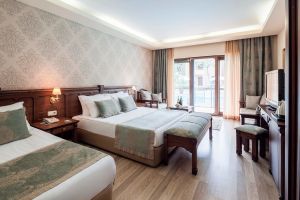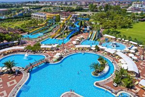Turan Prince предлага аквапарк на място с 14 водни пързалки в басейните. Ресторант Sofra сервира богат избор от ястия на шведска маса от световната и традиционната турска кухня. Китайският и мексиканският ресторанти поднасят морски дарове и разнообразни специалитети.