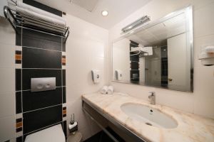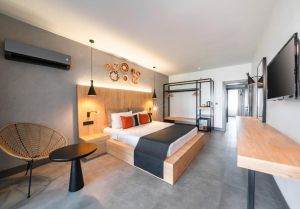 Хотелът предлага климатизирани стаи с гардероб, електрическа кана, минибар, сейф, телевизор с плосък екран, балкон и самостоятелна баня с душ.